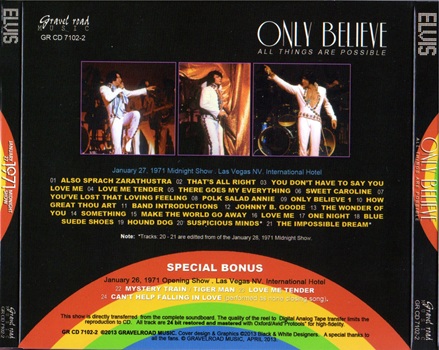 Tracks 20 and 21 are edited from the January 28, 1971 Midnight Show