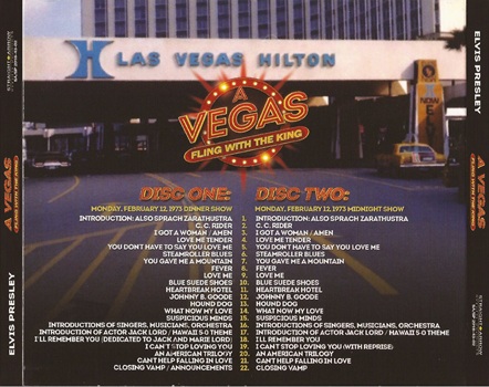 It's 2CD entitled "A Vegas Fling With The King" featuring Elvis' Dinner and Midnight show from February 12th, 1973. These recordings are taken directly from original 'booth recorded' mastertapes