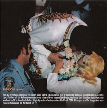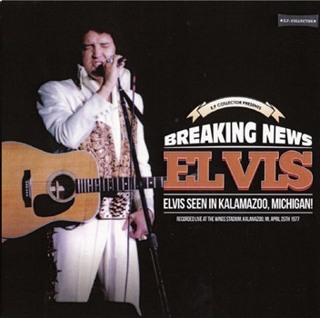 Expected soon from the E. P. Collector label is another fine release titled 'Breaking News - Elvis Seen In Kalamazoo, Michigan!' (label E. P. Collector, catalogue number EPC 2017-12) recorded live from the audience in Kalamazoo, MI, April 26th, 1977.