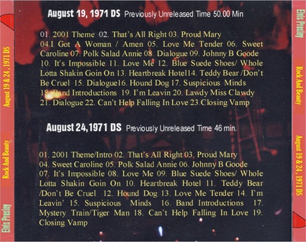 Available from the middle March, Rock and Beauty (SR Records) with focus on Elvis' August 1971. Both the shows are previously unreleased Taken directly from a first generation tape.