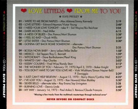 The King Elvis Presley, Other, 1993, Love Letters From Me To You