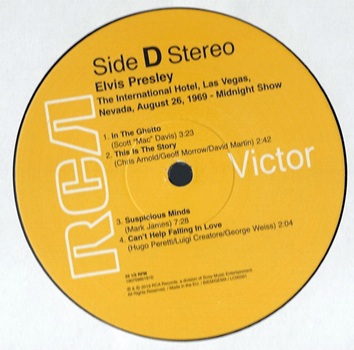 The King Elvis Presley, Side A / LP / International Hotel Las Vegas, Nevada August 26, 1969 / 19075960161 / 2019