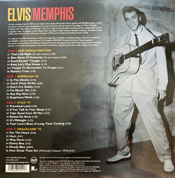 This 2-LP highlight collection of songs taken from the comprehensive Memphis release features newly mixed versions of select recordings, pure and without overdubs. Taking listeners through the many recordings Elvis had done while in Memphis, this 2LP set collects songs recorded at SUN Records, American Studio and Stax sessions, his 1974 hometown show and his last recordings in Graceland.