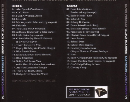 The King Elvis Presley, Import, 2011, Black Diamond - Las Vegas Closing Show 76
