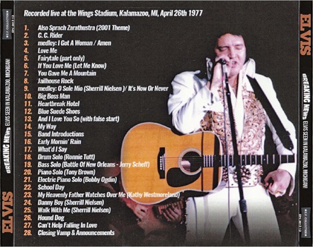 Expected soon from the E. P. Collector label is another fine release titled 'Breaking News - Elvis Seen In Kalamazoo, Michigan!' (label E. P. Collector, catalogue number EPC 2017-12) recorded live from the audience in Kalamazoo, MI, April 26th, 1977.