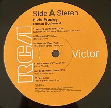 The King Elvis Presley, LP, 9075978581, Sunset Boulevard, 2025